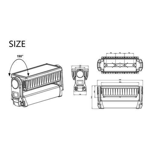 Đầu di chuyển ánh sáng nhấp nháy IP65 có khả năng bảo vệ chống thấm nước tốt và chuyển động Tilt giúp nó linh hoạt hơn trong việc sử dụng sân khấu. Led ống giữa kết hợp bởi 144 miếng 5W trắng Led và bảng điều khiển dẫn kết hợp bởi 480 miếng 3in1 Led. Thiết bị chiếu sáng có 8 phân đoạn và xây dựng phong phú trong hiệu ứng hoa văn