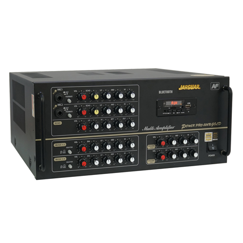 Jarguar Pro-506N Gold 2022 chắc chắn là Amply karaoke có bluetooth mạnh nhất thế giới hiện nay, với công suất sử dụng thực tế lên tới 450W cho mỗi kênh ra loa. Âm thanh cực kỳ mạnh mẽ, được thể hiện bởi 506N Gold thực sự mạnh mẽ và ấn tương. Số sò của 506N Gold là 24. Mạch Analog công suất lớn gấp 3 lần so với amply 506N thường. Với công suất cực lớn như vậy, khó có loại loa nào thử thách được 506N Gold của Jarguar. 506N Gold có thể chơi nhạc đồng thời 4 loa lớn. Mọi thứ đều dễ dàng đối với 506N Gold.