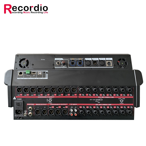 đầu vào/đầu ra kỹ thuật số AES 12 kênh đầu ra tín hiệu Đầu ra chính L, R, 8 đầu ra phụ Aux1-8, 1 đầu ra giám sát tai nghe Tín hiệu mở rộng từ xa: Hộp giao diện hai giai đoạn với 16 đầu vào và 8 đầu ra có thể được kết nối cùng lúc để đạt được khả năng mở rộng IO đầu vào và đầu ra.