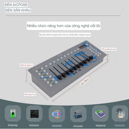 Thương hiệu: lCCVN Loại: Bảng điều khiển DMX512-mini192 có pin