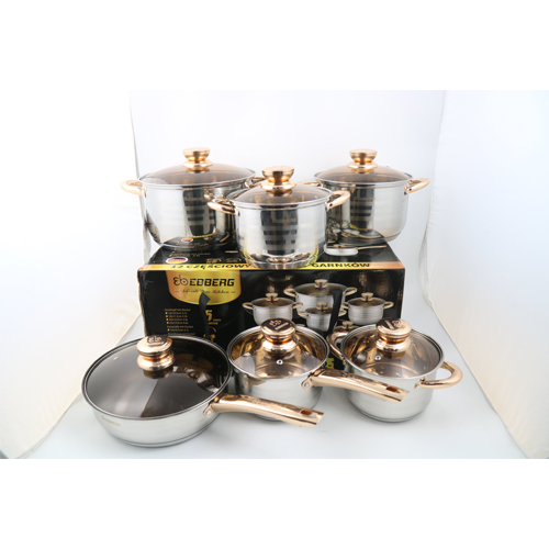 Bộ 6 Nồi Chảo Inox 5 Đáy Eb EBBERG EB-8013 Dùng Mọi Bếp - Hàng Chính Hãng sử dụng được với mọi loại bếp, kể cả bếp từ. Bộ sản phẩm gồm 1 quánh 16 cm, 04 nồi với đường kính 16-18-20-24cm và 1 chảo 24 cm phù hợp với nhu cầu nấu nướng của mọi gia đình. Quánh nhỏ 16cm thích hợp để luộc trứng, nấu mì, nấu cháo, nồi cỡ trung 20 – 24 cm để nấu canh, nấu lẩu cho 2 – 4 người và chảo 24 cm có chiên xào lượng thực phẩm lớn cho 3 – 5 người ăn.