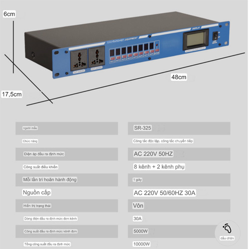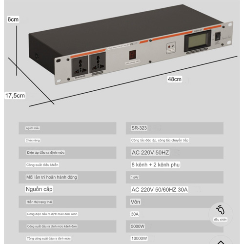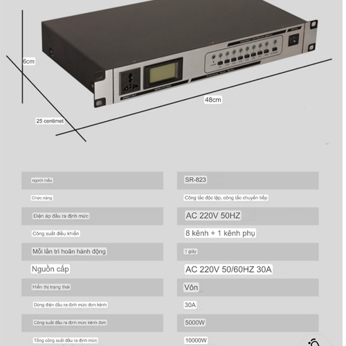 Thương hiệu: lCCVN Loại: Bộ chia nguồn 8+2 chiều SR823 , lọc thông minh, hiệu xuất sân khấu, quảy lý ổ đa năng KTV
