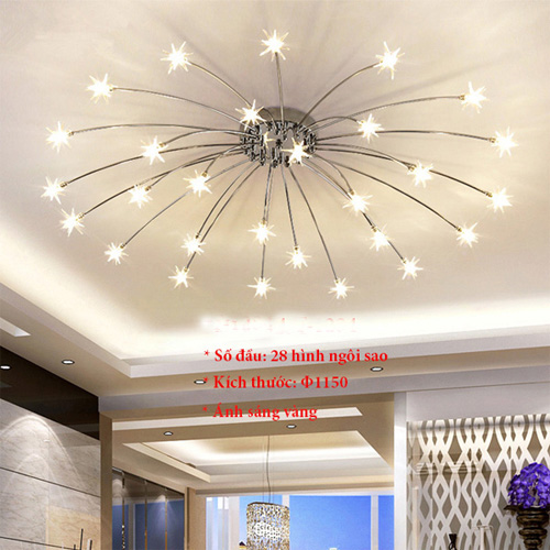 Đèn có thiết kế là 28 ngôi sao đẹp mắt, ánh sáng vàng hài hòa, tạo được sự sang trọng cho không gian.