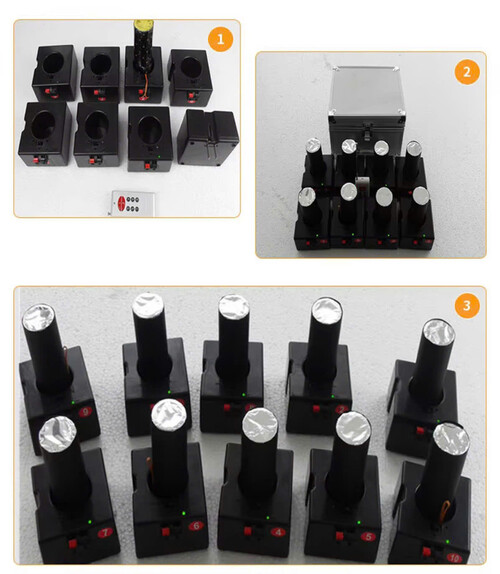Bộ điều khiển từ xa: 2 chiếc (điều khiển từ xa 1 nút bấm có thể phun được tất cả các máy. Bộ điều khiển từ xa 4 nút ABCD, 1 nút điều khiển 2 đầu thu)