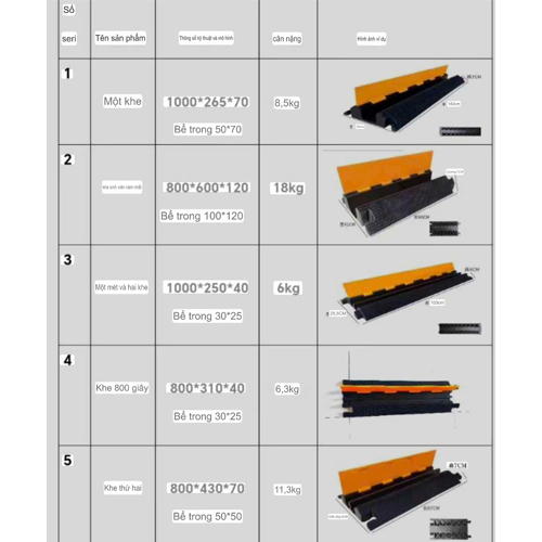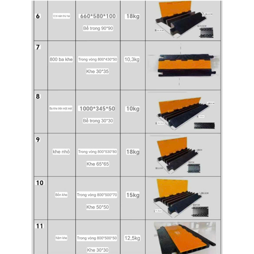 hoàn thành nhìn; 7. Có không cần phải phá vỡ các Ngân hàng cho chất lượng hàng đầu bảo vệ cáp trên sàn nhà. Cáp Bảo Vệ của 8. Smal kênh dây Bìa cung cấp tất cả các bạn các bảo vệ bạn cần từ một không dẫn điện bảo vệ cáp. BC-CP05 900*600*50n Kênh Kích thước: 35*35mm Cao su và nhựa PVC Bìa BC-CP04 900*500*60n Kênh Kích thước: 45*45mm Cao su và nhựa PVC Bìa BC-CP03L 900*600*70m Kênh Kích thước: 50*70mm Cao su và nhựa PVC Bìa BC-CP03S 1000*300*50 Kênh Kích thước: 30*35mm Cao su và nhựa PVC Bìa BC-CP03H 900*550*80n Kênh Kích thước: 65*60mm Cao su cơ sở và PE Bìa