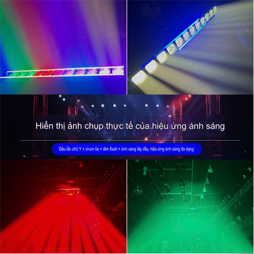 Tính năng: Đầu lắc chữ Y + chùm tia + đèn flash + ánh sáng lấp đầy Hạt đèn: 12 hạt đèn bốn trong một 60W, 144
