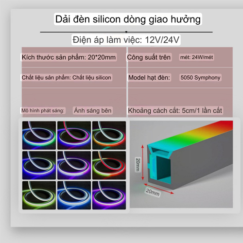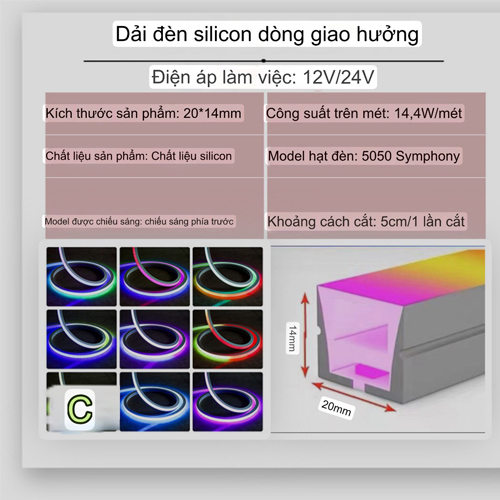 Thương hiệu: lCCVN Loại: Cuộn led silicon đầy màu sắc đèn led điện áp thấp 24v ngoài trời chống thấm nước