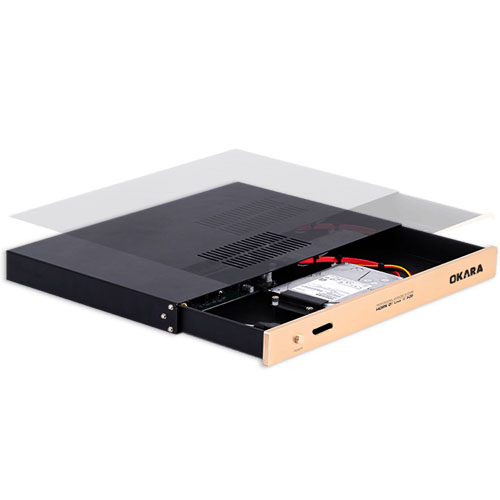 Kích thước nhỏ gọn hiện đại kết hợp với màu vàng đồng sang trọng. Khay máy được bố trí gần như rỗng nên rất nhẹ.