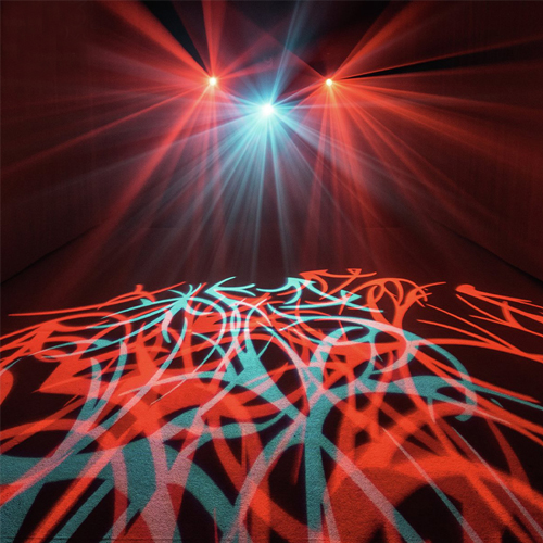 mô hình 1 bánh xe Gobo xoay: với 7 GOBO + ánh sáng trắng Có thể đạt được hiệu ứng xoay, lưu lượng nước hai chiều và chập chờn