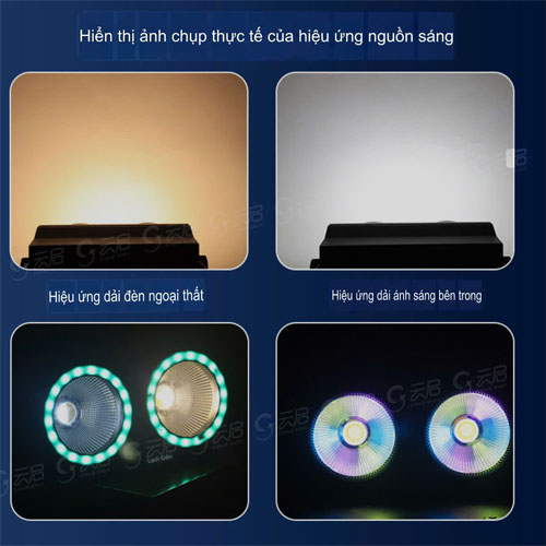 Nguồn sáng LED: 2*100W trắng tinh khiết + trắng ấm hai trong một, 36X0.5W RGB ba trong một 5050 hạt đèn