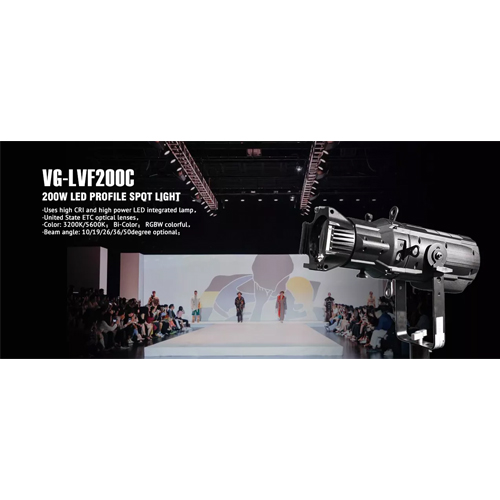 Đèn chiếu sáng hồ sơ LED đầy màu sắc 200W RGBW 4in1 -Mẫu mã: VG-LVF200C -Công suất đèn: 200W -Màu sắc: RGBW 4in1 -Góc chùm tia: 5/10/19/26/36/50° -CRI: Ra92+