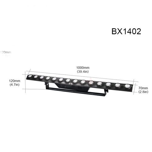 LED: 14 × 3W trắng ấm CREE + 56pcs 0,5W RGB3in1 LED Pixel Bar Vị trí làm việc: Mọi vị trí làm việc an toàn Điện áp: 90V / 240V 50 / 60Hz Rút điện: 100W Vỏ: Vỏ hợp kim nhôm Chế độ điều khiển: Tự động chạy, DMX512, Âm thanh Kênh DMX: 8/12/60 kênh DMX IP: IP20 Trọng lượng đóng gói: 3 Kg Kích thước: 111 × 18 × 23cm