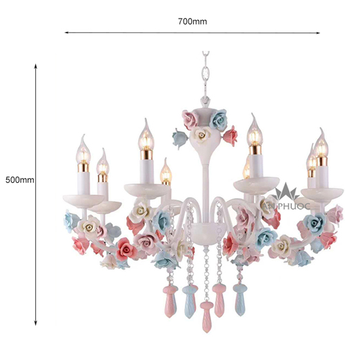– Đèn chùm gốm hoa kết hợp – LCC1112/6 công suất E14*6 bóng. Nếu bạn sử dụng bóng led 4w thì sẽ có một nguồn sáng lý tưởng, vừa hiệu quả lại tiết kiệm điện năng.