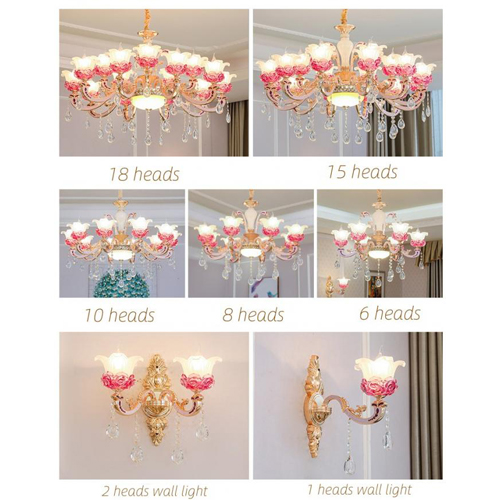 5. Việc sử dụng Hợp kim nhôm + ngọc + thủy tinh + pha lêtôilàm cho đèn trang trọng và bền hơn.