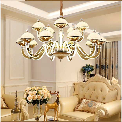 Mẫu đèn chùm cổ điển được thiết kế vô cùng độc đáo. Thiết kế tay đèn chắc chắn tạo khung hình tròn, bát hoa cách điệu gợn sóng nhé làm tăng nên nét tinh tế của đèn.