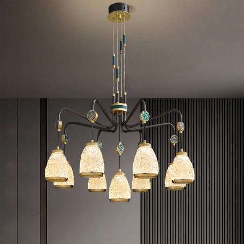 Hài hòa với mọi không gian, đèn chùm phong cách Indochine 8691-8+4+1 là sự lựa chọn cực kỳ tinh tế và nhã nhặn cho không gian của bạn. Thuộc phân khúc đèn chùm trang trí trung – cận cao cấp, đèn chùm phong cách Indochine 8691-8+4+1 được đánh giá là mảnh ghép hài hòa phù hợp với mọi không gian sống. Quả thực không ngoa chút nào khi dành những lời bình hoa mỹ như vậy để nói về mẫu đèn chùm này. 8691-8+4+1 là một trong những mẫu đèn chùm đắt khách nhất tại LCC, gây ấn tượng bởi những chất liệu thủy tinh trong suốt, cho những tán sắc cực kỳ long lanh khi phản chiếu ánh sáng. Với phong cách tân cổ điển, đèn chùm phong cách Indochine 8691-8+4+1 được các nhà thiết kế lược bớt đi những chi tiết rườm rà, hoa lá rối mắt mà tập trung vào giá trị chất liệu cao cấp: thân đồng, thủy tinh…Là sự lựa chọn hoàn mỹ cho không gian kiến trúc cổ điển, tân cổ điển quý phái.