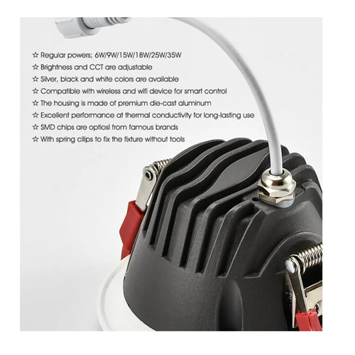 CCT Changeable Downlight cũng nổi bật so với các sản phẩm chiếu sáng khác về độ an toàn và độ bền. Với 3 cài đặt trước nhiệt độ màu dễ dàng thay đổi bằng nút nhấp chuột đơn giản, bạn có thể chọn giữa màu trắng ấm, 3000K đến 4000K sáng và rực rỡ hoặc 6000K màu trắng mát để tiết kiệm chi phí trong kho. Với xếp hạng IP44, nó có khả năng chống bụi, chống bắn tung tóe và phù hợp để sử dụng trong môi trường ẩm ướt, mang lại cho bạn sự đảm bảo rằng nó sẽ tiếp tục cung cấp hiệu suất hoàn hảo trong tất cả các ứng dụng của nó. Ngoài ra, CCT Changeable Downlight được thiết kế với công nghệ chống chói thông minh giúp giảm thiểu nguy cơ xảy ra bất kỳ điểm sáng nào hoặc chói mắt đột ngột, mang lại cho bạn ánh sáng dễ chịu và thoải mái, dễ nhìn.