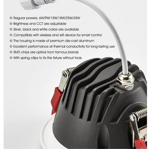 CCT Changeable Downlight cũng nổi bật so với các sản phẩm chiếu sáng khác về độ an toàn và độ bền. Với 3 cài đặt trước nhiệt độ màu dễ dàng thay đổi bằng nút nhấp chuột đơn giản, bạn có thể chọn giữa màu trắng ấm, 3000K đến 4000K sáng và rực rỡ hoặc 6000K màu trắng mát để tiết kiệm chi phí trong kho. Với xếp hạng IP44, nó có khả năng chống bụi, chống bắn tung tóe và phù hợp để sử dụng trong môi trường ẩm ướt, mang lại cho bạn sự đảm bảo rằng nó sẽ tiếp tục cung cấp hiệu suất hoàn hảo trong tất cả các ứng dụng của nó. Ngoài ra, CCT Changeable Downlight được thiết kế với công nghệ chống chói thông minh giúp giảm thiểu nguy cơ xảy ra bất kỳ điểm sáng nào hoặc chói mắt đột ngột, mang lại cho bạn ánh sáng dễ chịu và thoải mái, dễ nhìn.