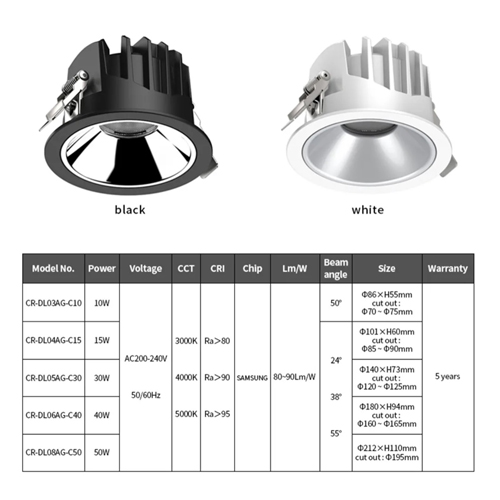 Đèn COB Downlight chống chói là sản phẩm cao cấp, mang lại hiệu suất tuyệt vời cho cả ứng dụng dân dụng và thương mại.Nó phù hợp cho các ứng dụng trần nông và cung cấp ánh sáng thoải mái, đồng đều, không nhấp nháy, PF>0,95 và không chói, với độ sáng cao mức độ hiệu quả năng lượng, lên tới 120lm/w ở 5000K Ra>80. Đèn downlight COB 30W đi kèm với công nghệ UGR tiên tiến, có giá trị UGR tối đa là 22. Điều này đảm bảo rằng Đèn downlight COB 30W đáp ứng các yêu cầu nghiêm ngặt nhất về hình ảnh trong các tiêu chuẩn chiếu sáng và tiết kiệm năng lượng toàn cầu.