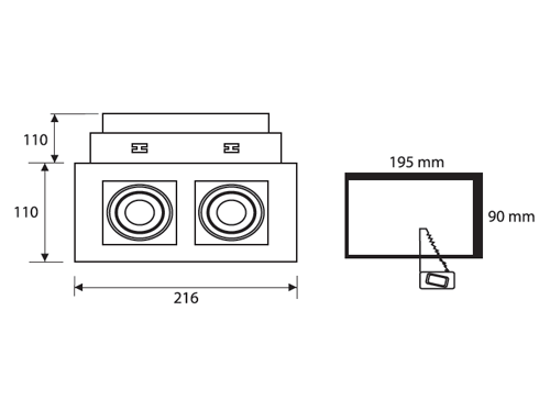 - Khoét lỗ: 195x90mm.