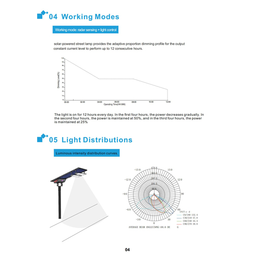 6. Góc của mô-đun LED và bảng điều khiển năng lượng mặt trời có thể được điều chỉnh riêng.