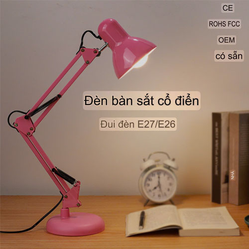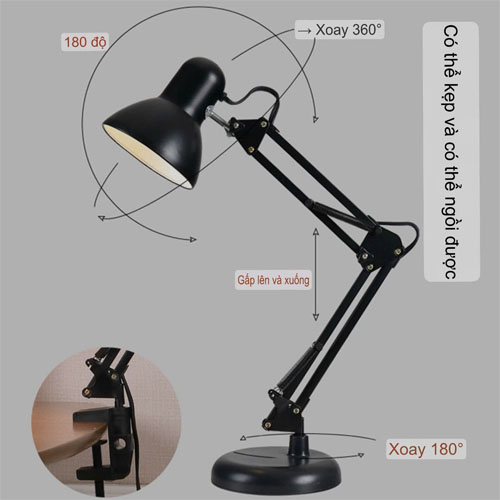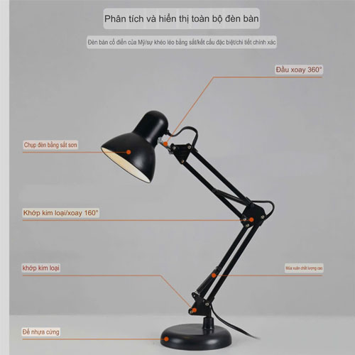 Đèn bàn led phong cách mỹ cánh tay dài văn phòng làm việc, bàn học, kẹp đọc sach, đèn bàn sắt máy tính