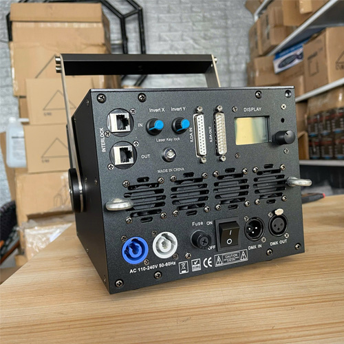 Công suất laser: 6 watt {đỏ: 1 watt 638nm; xanh lục: 2 watt 520nm; xanh lam 3 watt 445nm}