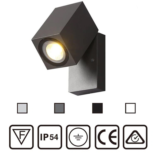 Đèn tường ngoài trời siêu hiện đại bằng nhôm đúc này sử dụng 1 bóng đèn GU10 có công suất tối đa 40Watt.