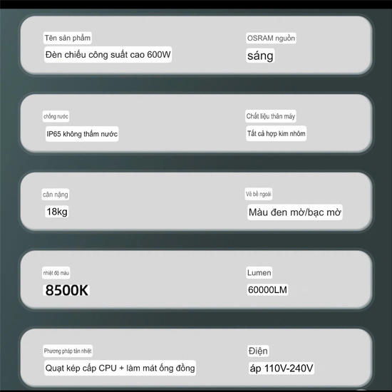 Tên sản phẩm Đèn chiếu công suất cao 600W