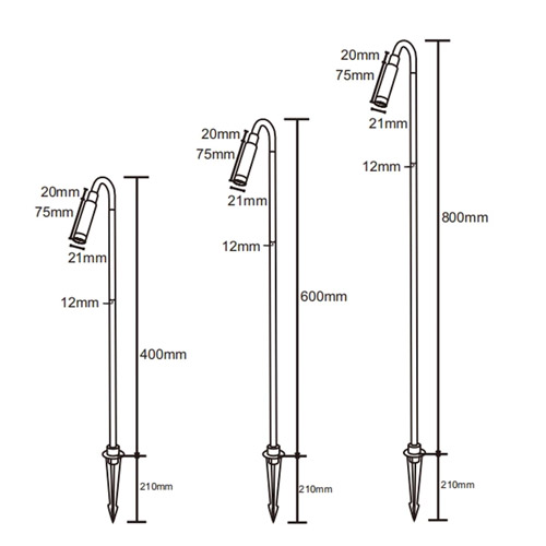 | Kích thước | Đường kính 21×75mm, Cao 400/600/800mm |