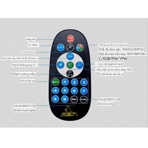 Chế độ điều khiển: Âm thanh/Tự động/DMX