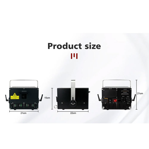 | Công suất laser: | 6W [Đỏ: 1,5W 638nm; Xanh lục: 1,5W 520nm; Xanh lam: 3W 445nm] |