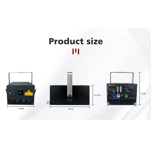 SD (tích hợp hơn 200 hiệu ứng), điều khiển âm thanh, hoạt động tự động, DMX 18/27 kênh, chế độ chủ/tớ, điều khiển phần mềm ILDA |