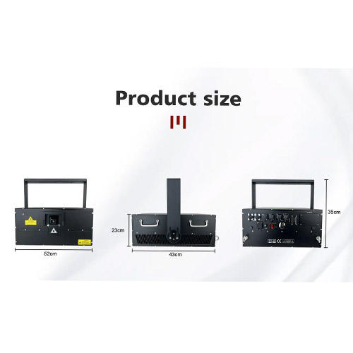 | Công suất laser: | 51 watt (Đỏ: 13w/638nm Xanh lá: 16w/520nm Xanh lam: 22w/450nm) |