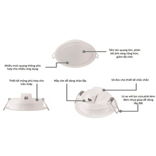 Thương hiệu: LCC Loại: Đèn led âm trần 3.5W D80 320lm 59200 Philips