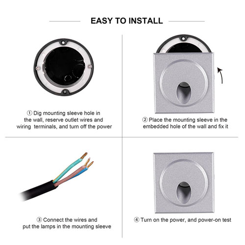 Đèn LED cầu thang vuông chống nước 1W / 2W / 3W IP65, Đèn LED chiếu bước, Đèn LED góc, Đèn LED cầu thang, Đèn tường LED vuông, Đèn LED công viên, Đèn tường LED âm tường: