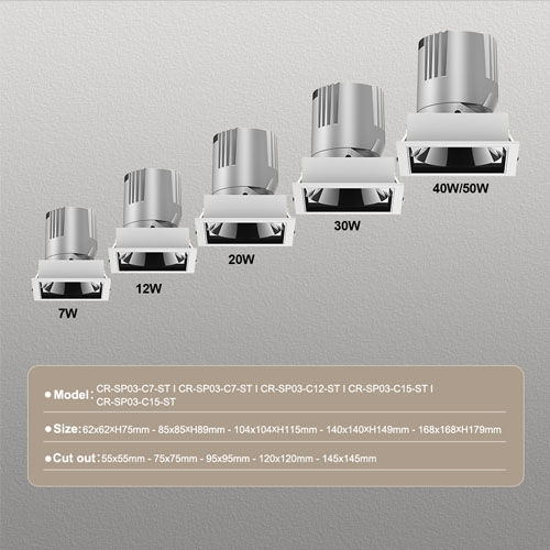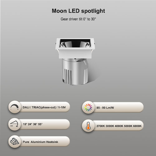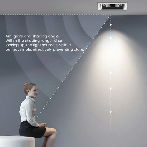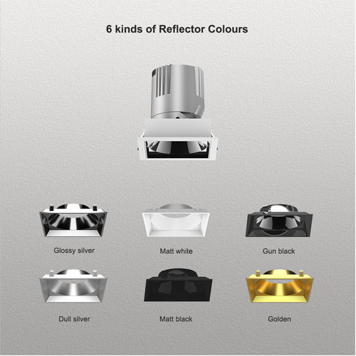 Đèn rọi led chống chói này được làm bằng tản nhiệt nhôm nguyên chất để tản nhiệt tốt hơn. Nhiệt độ Tc khoảng 65-70 độ ở trạng thái ổn định, cho phép đèn này có hiệu suất ánh sáng cao hơn và tuổi thọ dài hơn. Độ suy giảm ánh sáng phải dưới 21% sau 5 năm hoạt động. Nó được kết hợp chủ yếu bởi các chóa phản xạ màu khác nhau, chip COB thương hiệu, thấu kính Acrylic. Giống như hầu hết các đèn rọi led, nó có cấu trúc giao diện chống chói, với UGR nhỏ hơn 16. Sau khi đèn rọi này được lắp âm trần, ánh sáng sẽ không bị chói. Loại đèn rọi này chủ yếu được sử dụng trong các khách sạn sang trọng, biệt thự cá nhân, trung tâm mua sắm, nơi cấu trúc chống chói là bắt buộc, cũng như yêu cầu thông lượng lumen cao hơn.