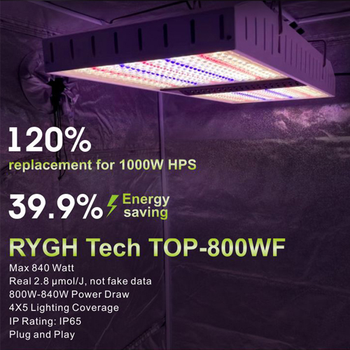 7, 800w-2,8umol/J, năng suất khoảng 3,8-4 Lbs, 1000w-2,8umol/J