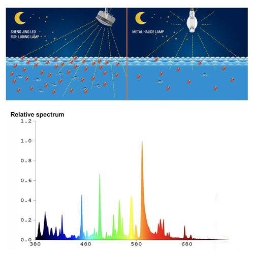 Đèn cá SJ800-4D so với đèn halogen kim loại 1000w