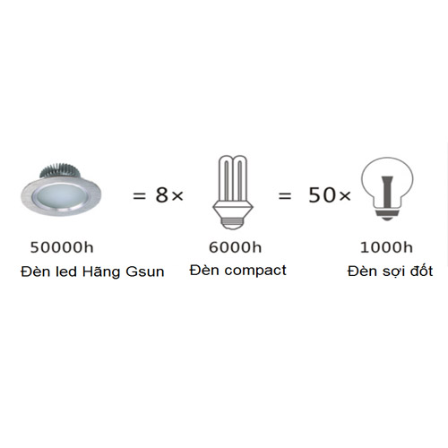So sánh tuổi thọ của đèn led Gsun với các loại đèn chiếu sáng thông thường
