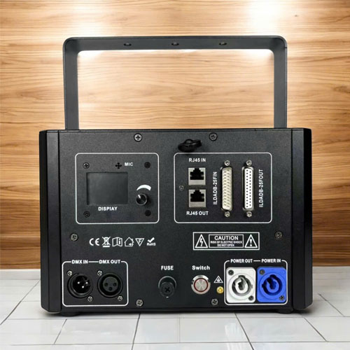 Công suất laser: 10W (đèn đỏ: 3W/xanh lá cây: 3W/xanh lam 4W)