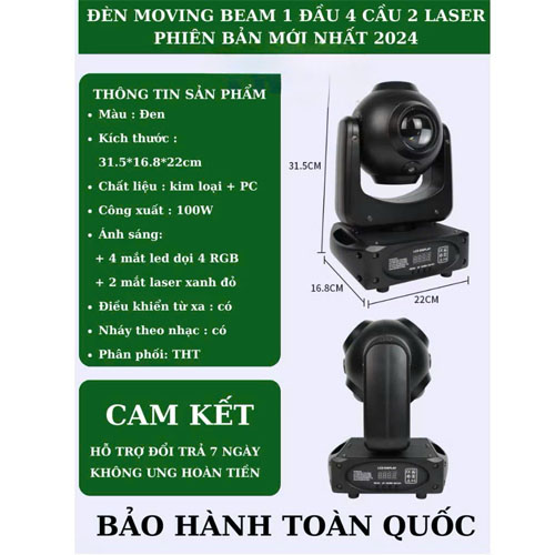 Thương hiệu: LCCVN Loại: Đèn moving beam 4 đầu 2 laser xoay 540 độ mới cho sân khấu đám cưới karaoke