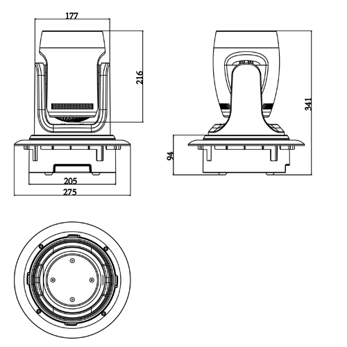 Nguồn sáng: LED 100W, 8000K Vòng đèn LED: 32 vòng đèn LED RGB 0,2W Khẩu độ ống kính: 100mm Góc chùm tia: 2,5°