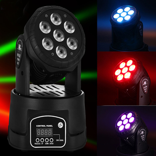 Đèn moving mini 7x12w mang lại khả năng chiếu sáng nhuộm màu cùng góc quay linh động trên sân khấu.