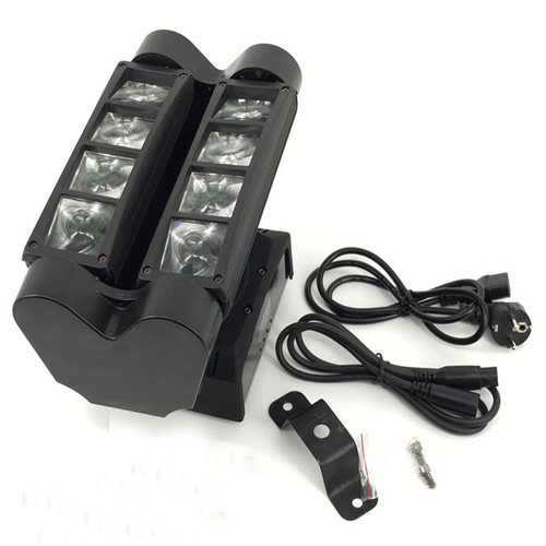 Đèn moving spider thuộc dòng sản phẩm đèn moving head sân khấu. Đèn sử dụng 8 bóng led 4 in 1 full color với công suất mỗi bóng là 12w mang lại hiệu ứng luồng sáng mạnh mẽ. Moving spider mang đặc điểm của đèn moving head spider trước đây nhưng được cải tiến thêm tính năng xoay tròn đều khiến hiệu ứng của đèn thêm phần sôi động hơn rất nhiều.