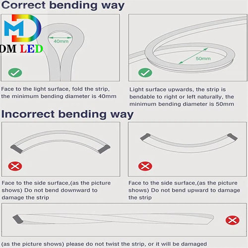 Đèn LED Neon có bản cắt 2.5cm (3led) và bản 1cm (1led), chỉ cắt theo đường mòn của mình