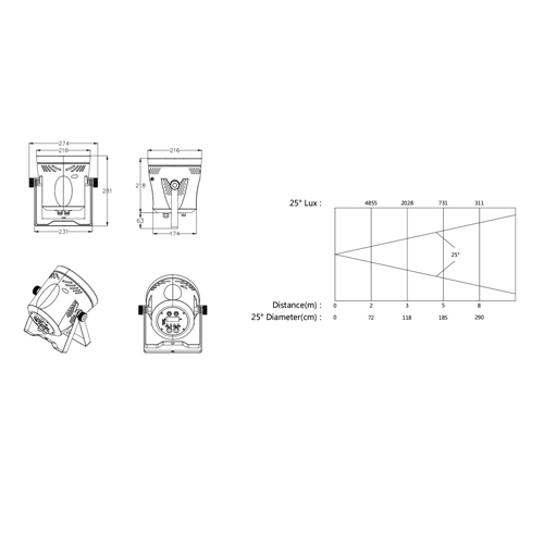 Nó có màn hình LED kỹ thuật số màu đỏ tươi và 4 nút bấm cơ học, cùng với giao diện nguồn và tín hiệu được trang bị đầu nối PowerCon và XLR. Chỉ nặng 2,8KG, đèn par led này là hiện thân của công nghệ chiếu sáng nhẹ nhưng mạnh mẽ.