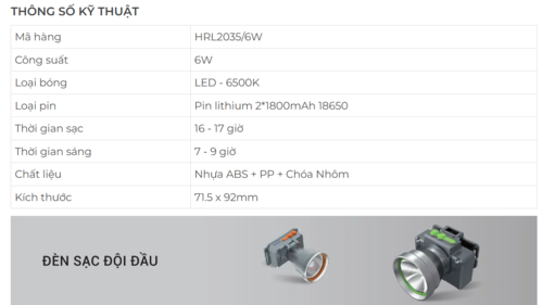 Thương hiệu: LCC Loại: Đèn pin sạc đội đầu Roman HRL2035/6W - sáng liên tục 15 giờ