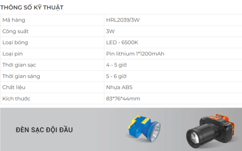 Thương hiệu: LCC Loại: Đèn pin sạc đội đầu Roman HRL2039/3W - sáng liên tục 6 giờ