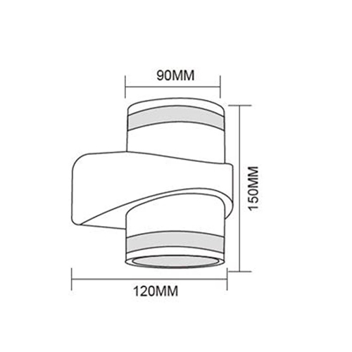 Đèn LED treo tường ngoài trời được làm bằng nhôm và sơn màu đen hoặc trắng. Kích thước: D90xH150mm.